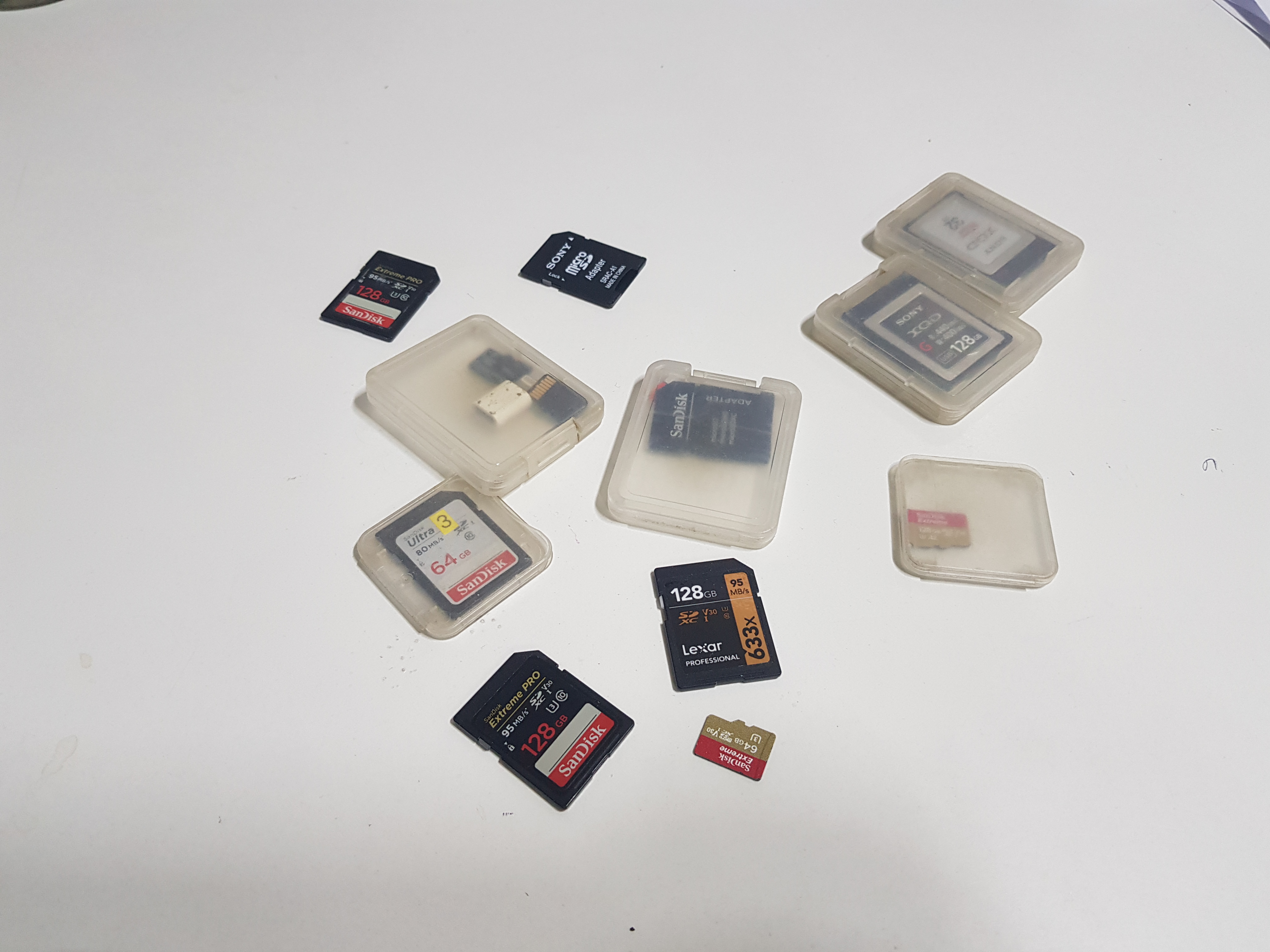 메모리를 관리하기 힘드네요. 기본적인 크기의 SD, Micro SD, 메모리카드 어댑터까지 아주 다양한 애들을 보관, 관리에 어려움을 가끔 느껴요.
