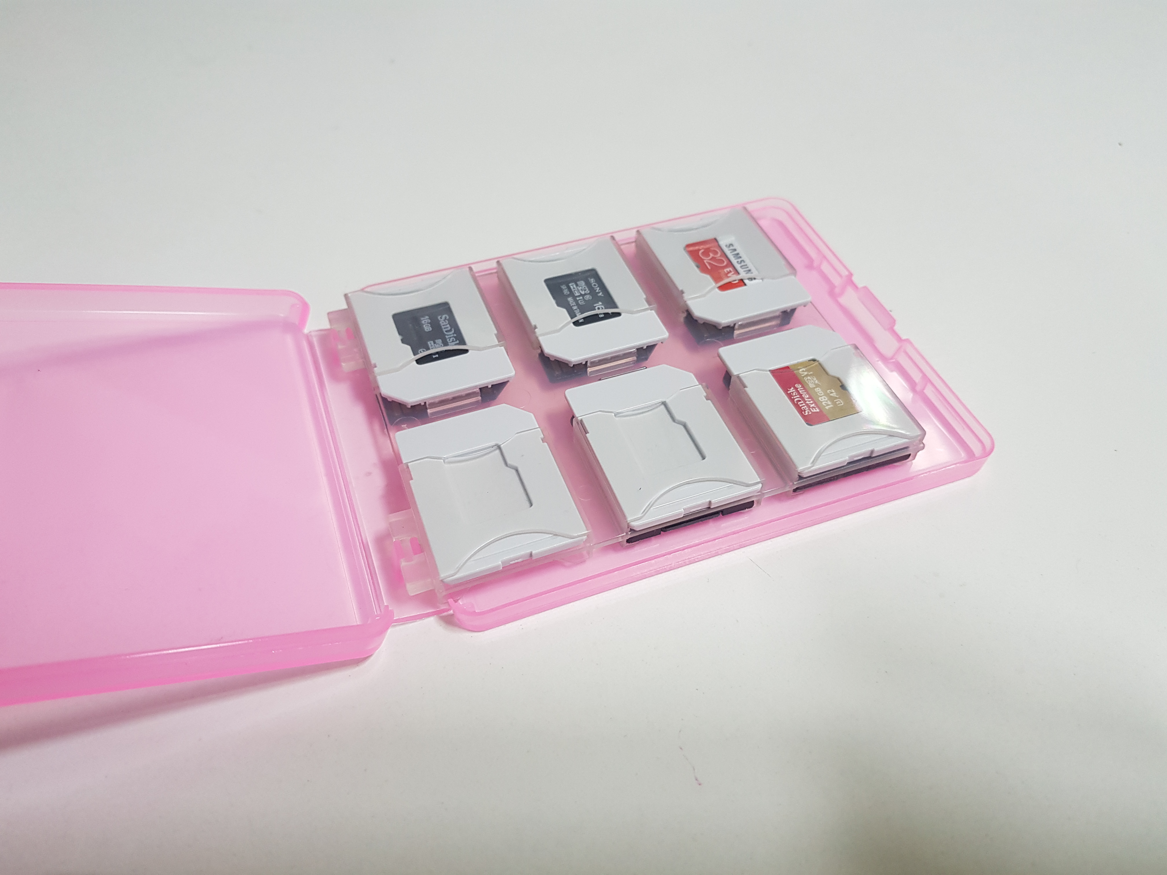 이 제품은 12개의 SD card 또는 Micro SD를 수납할 수 있네요. 물론 Micro SD는 케이스가 따로 있어서 6개를 수납 가능한 듯하지만 어댑터를 쓰면 더 넣을 수 있습니다.