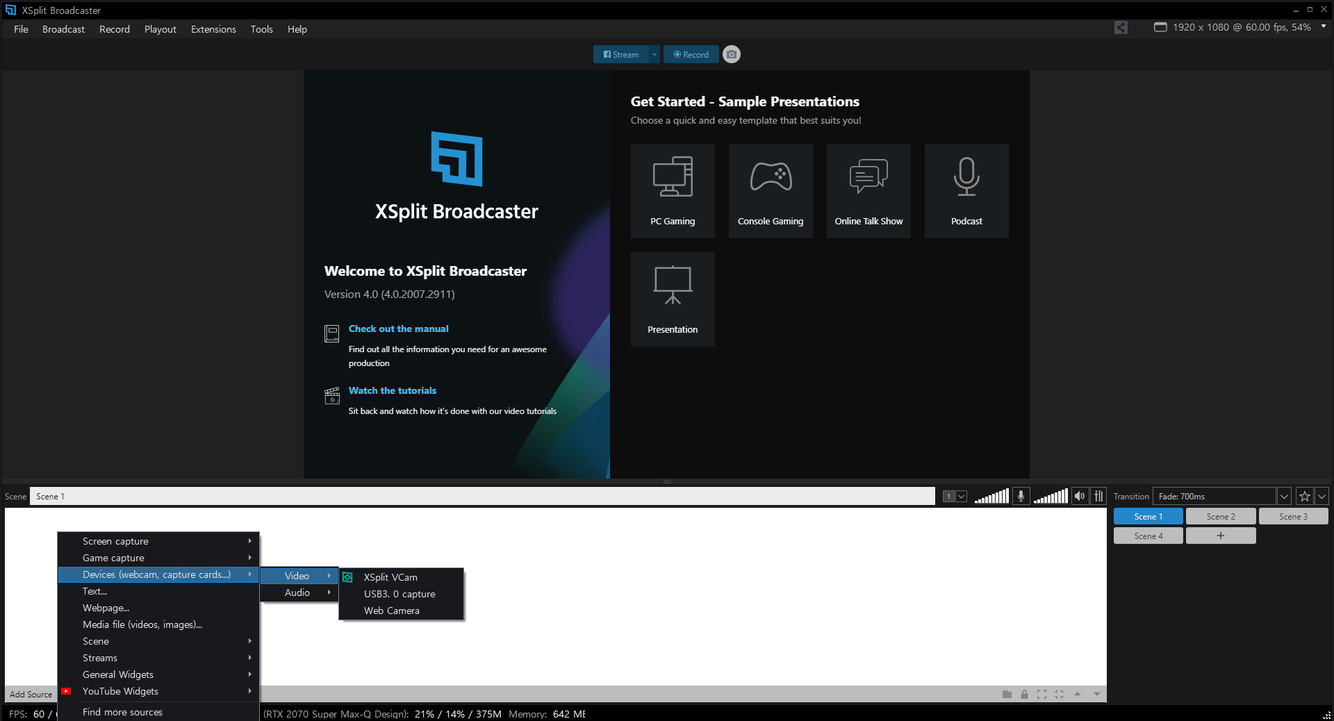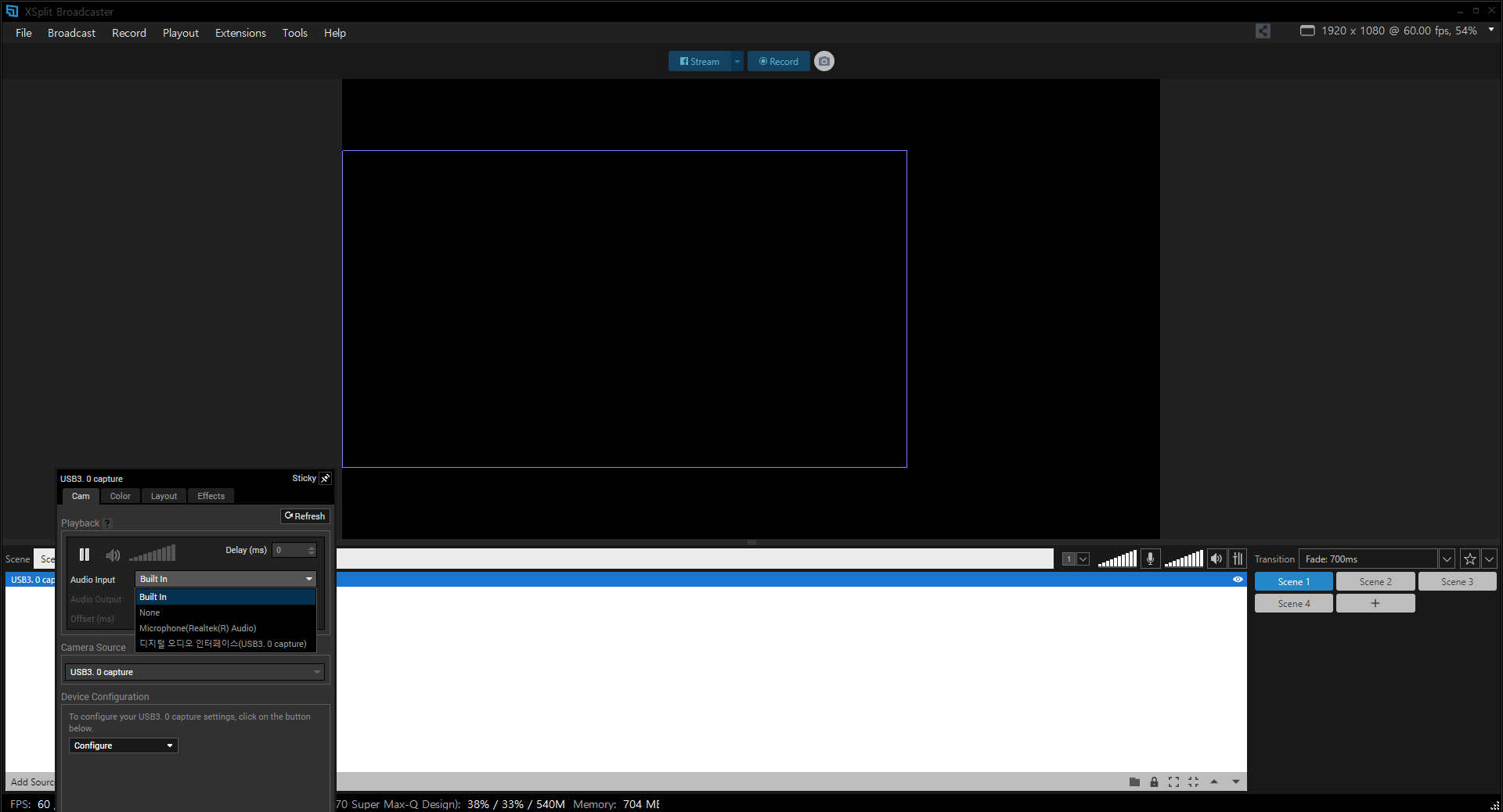 우선 xsplit를 실행하고 usb를 연결하니 잘 작동된다.