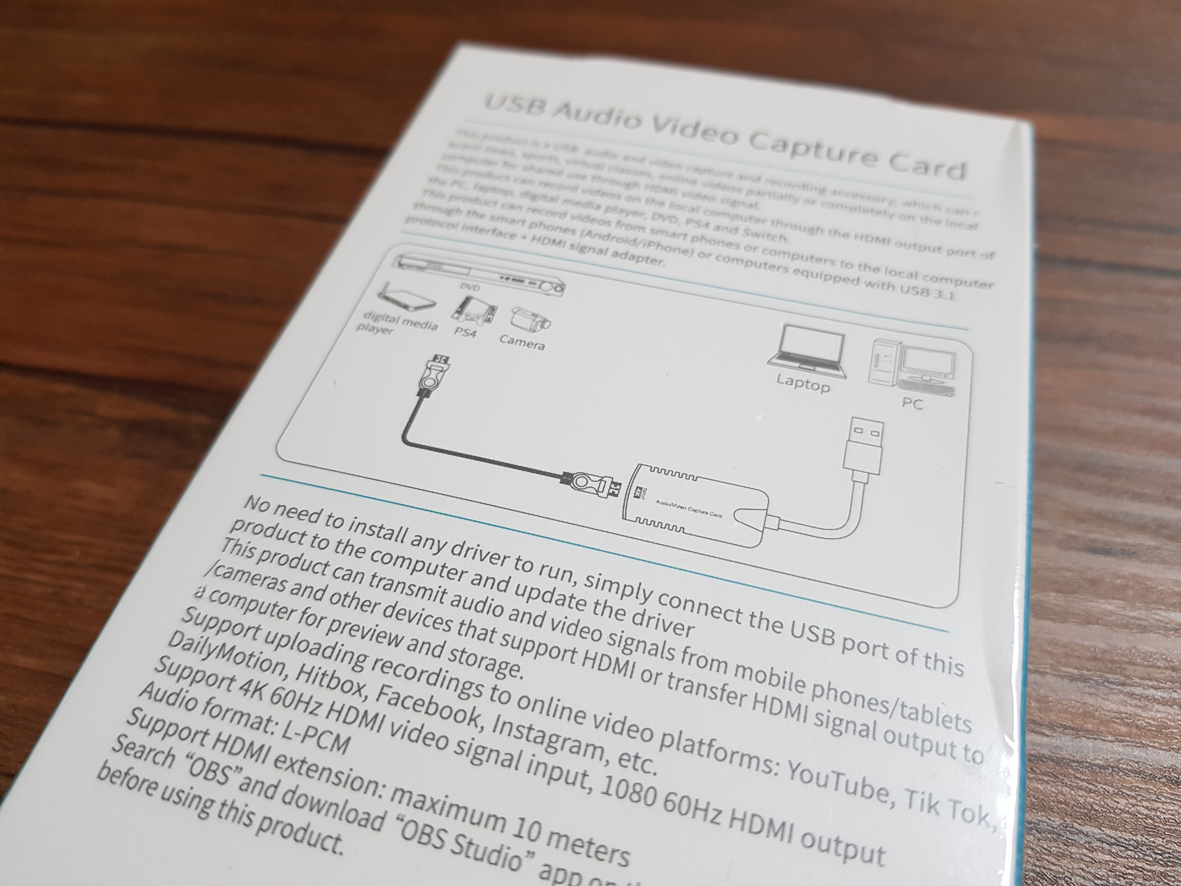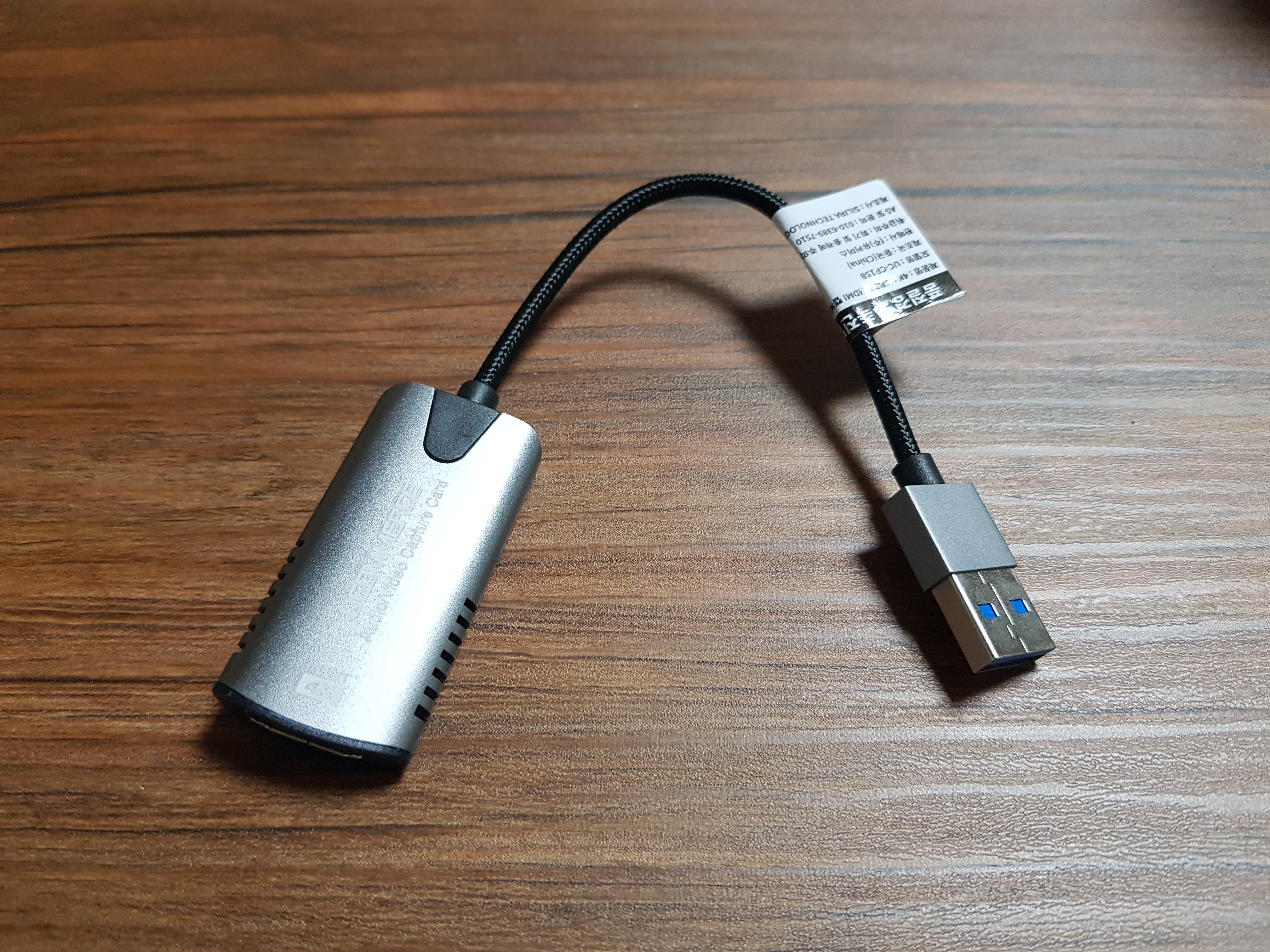 USB연결 단자가 선으로 되어 있는 것을 구입했는데 선 연결 없이 바로 연결하는 것이 좀 더 저렴했다. 그러나 직접연결하여 사용하는 경우 노트북의 usb에 단자에 접촉 불량이 생기는 경우를 많이 보았기에 최대한 안정적인 송출을 위해 조금 더 투자했다. 참고로 Usb허브를 사용하면 접촉불량에 에러를 조금이나만 방지할 수도 있으니 참고.