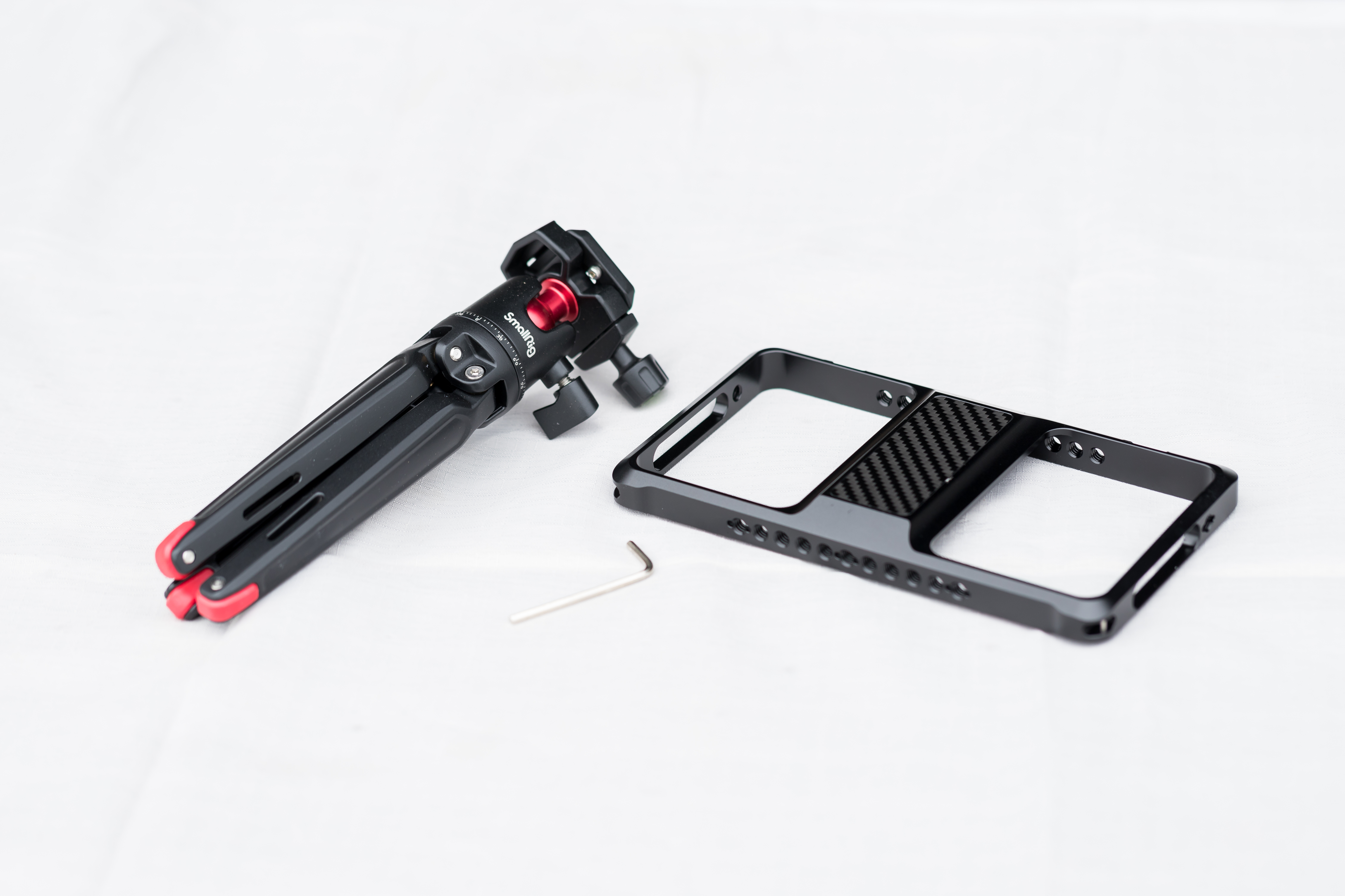 조명, 마이크, 보조배터리, 에그 등을 달고 중형 비디오삼각대에 연결하여 사용해도 무게가 많이 나가지 않으니 무난할 듯하다.
