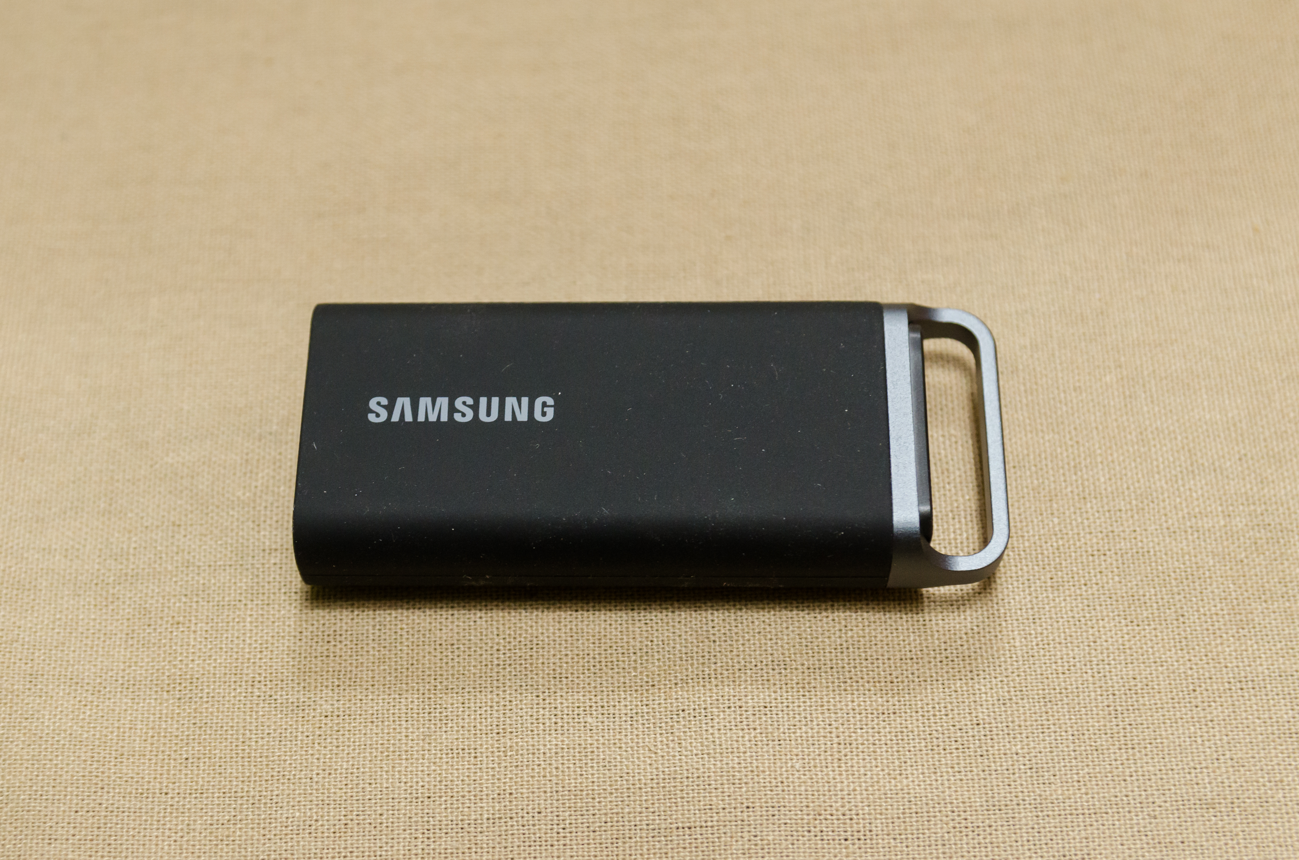 외형은 상단의 금속 링이 있어 휴대성과 한 손에 잡히는 디자인과 겉은 고무재질로 외부 충격에 SSD 내부를 보호하고 있다. 물론 SSD나 HDD나 외부 충격을 안 줘야 하는 것이 정석이다. T5나 T7처럼 딱 맞는 크기의 파우치가 있으면 좋겠다.